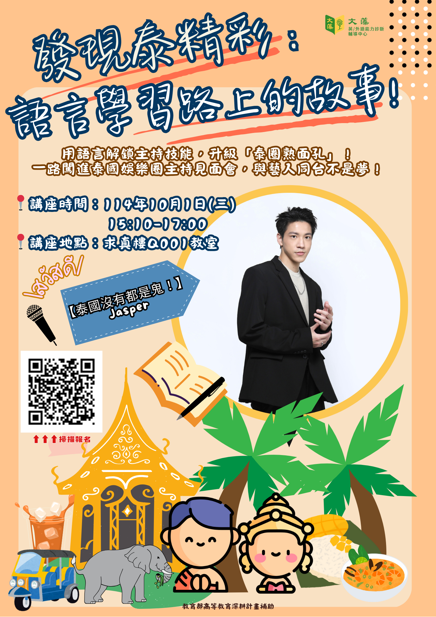 【歡迎報名】114學年度第1學期-秘笈處方達陣講座-發現泰精彩:語言學習路上的故事!